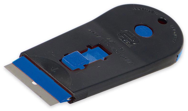 Der handliche Kunststoff-Glasschaber entfernt leicht und schonend Aufkleber von Glasflächen. Mit Kunststoffklingen auch auf Lack einsetzbar.